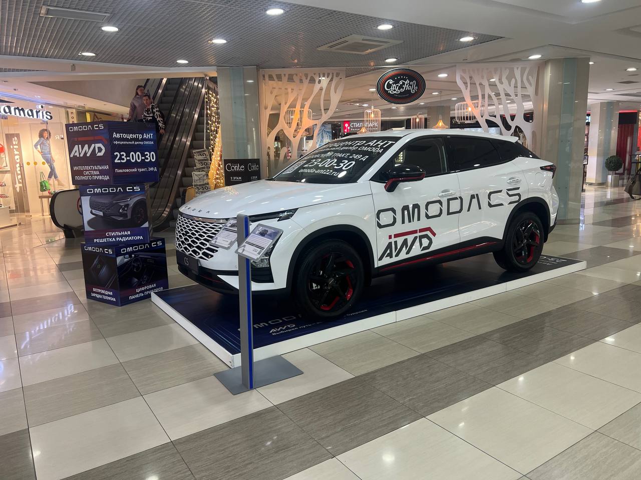 - Загляните в ТРЦ «Сити-Центр» по адресу Красноармейский проспект, 47а, здесь вы можете не спеша и с удовольствием оценить автомобиль OMODA C5.